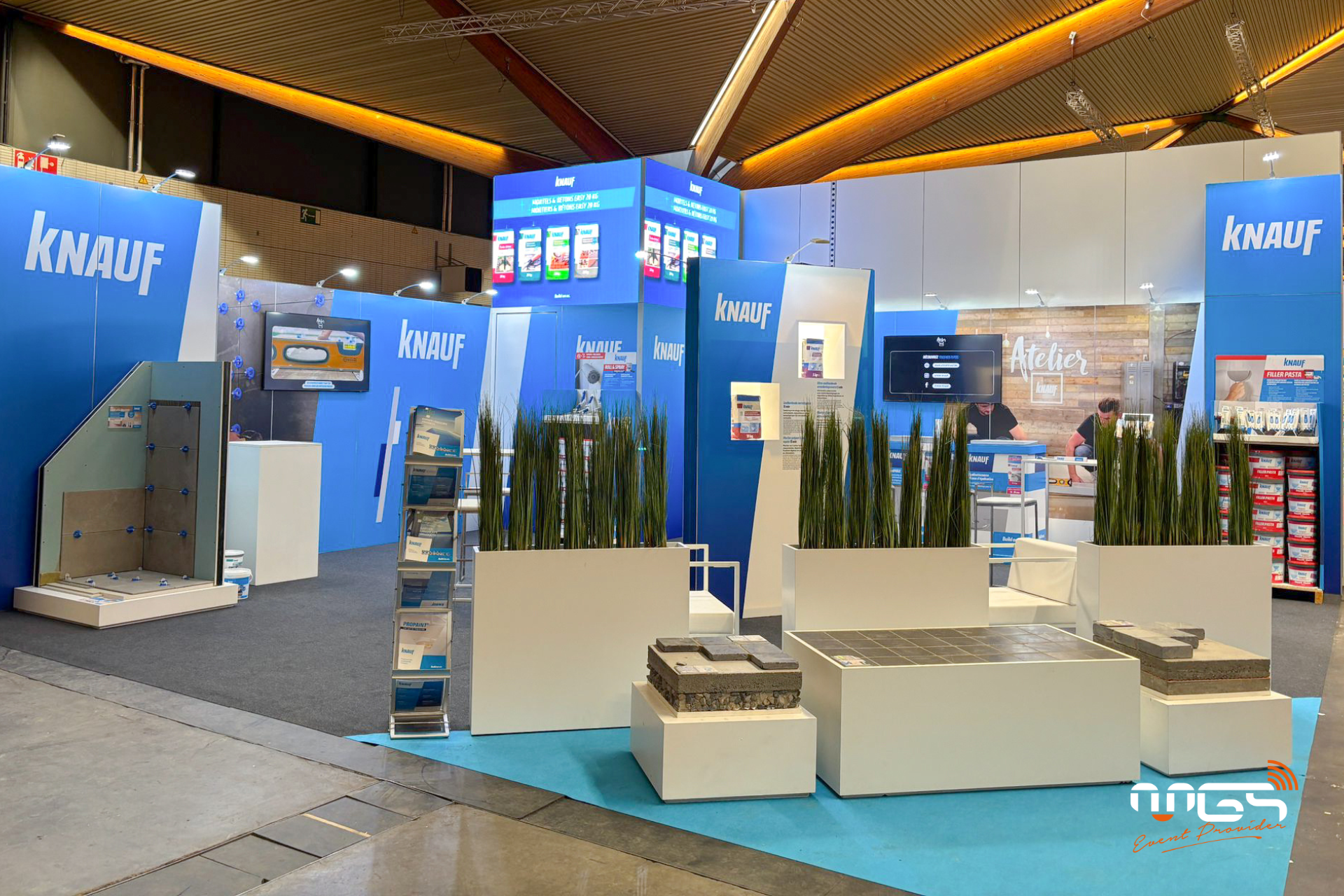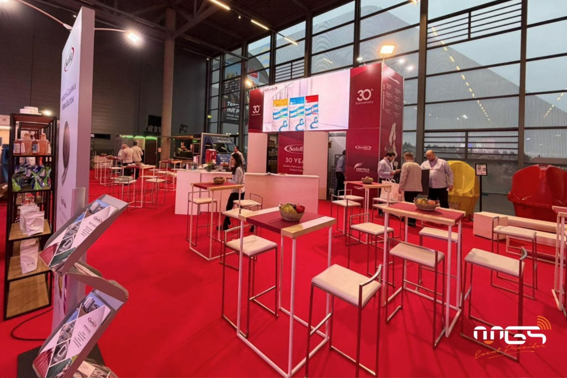 We can also help you with the design of your presentation materials and stage dressing.