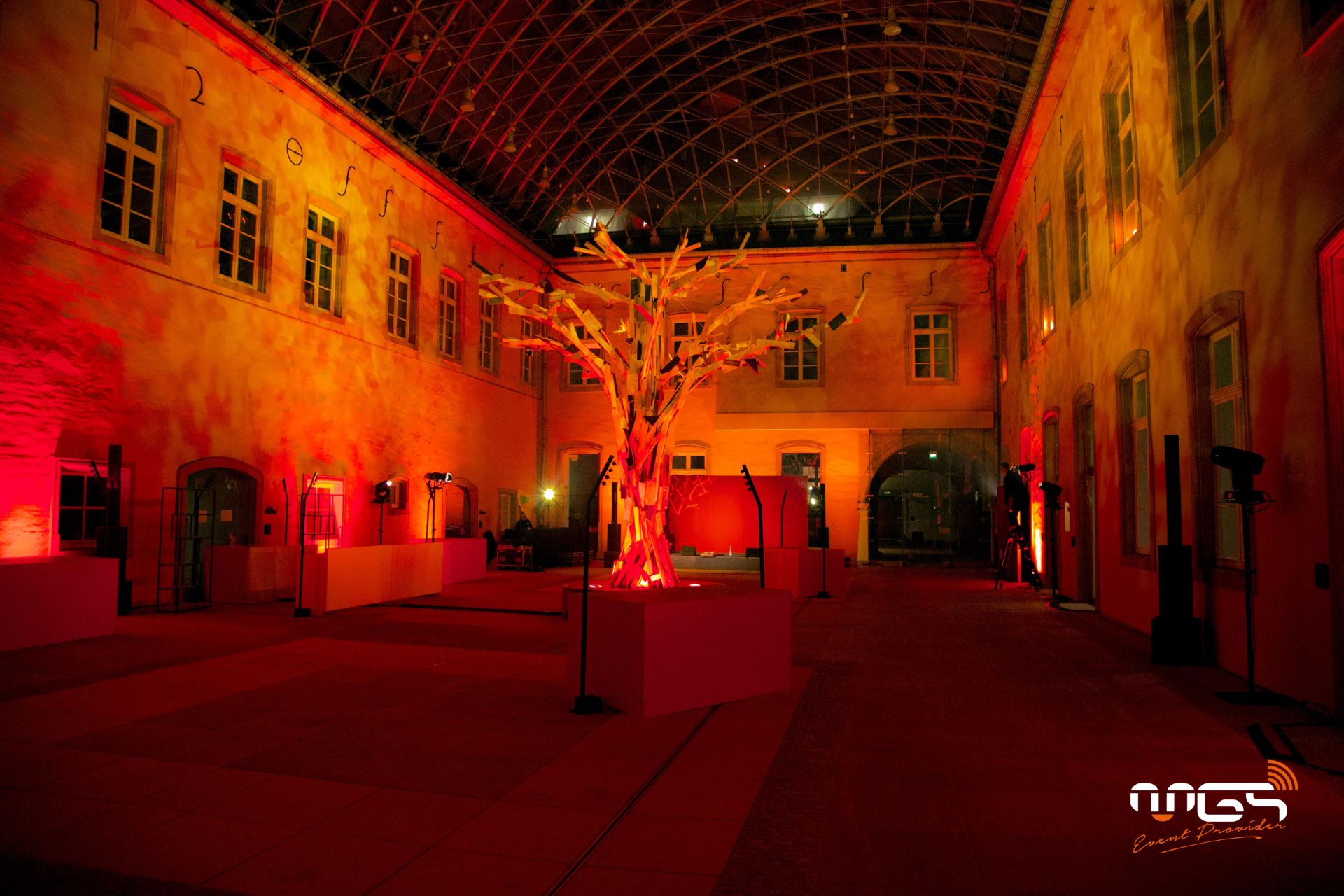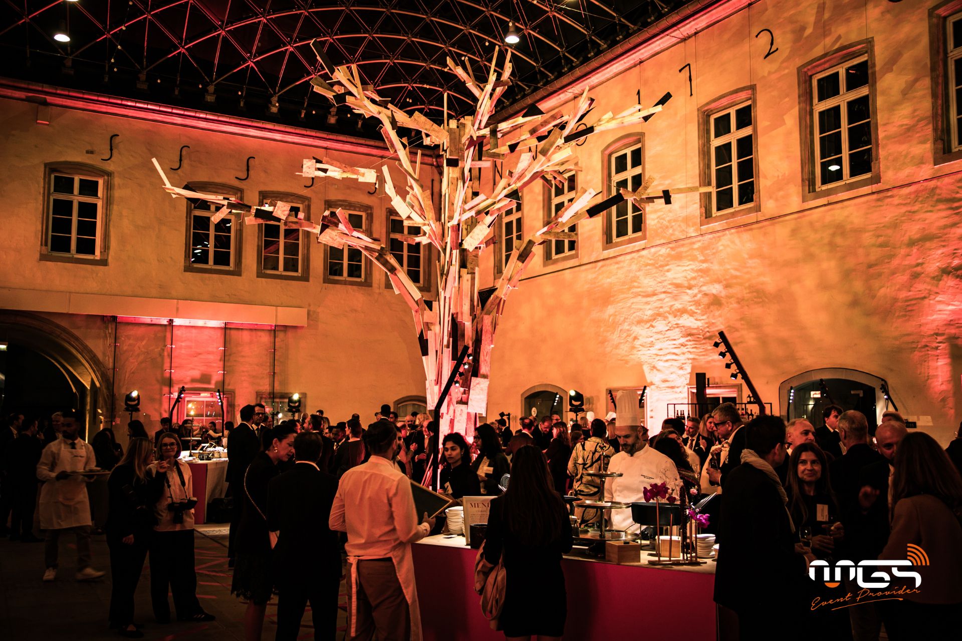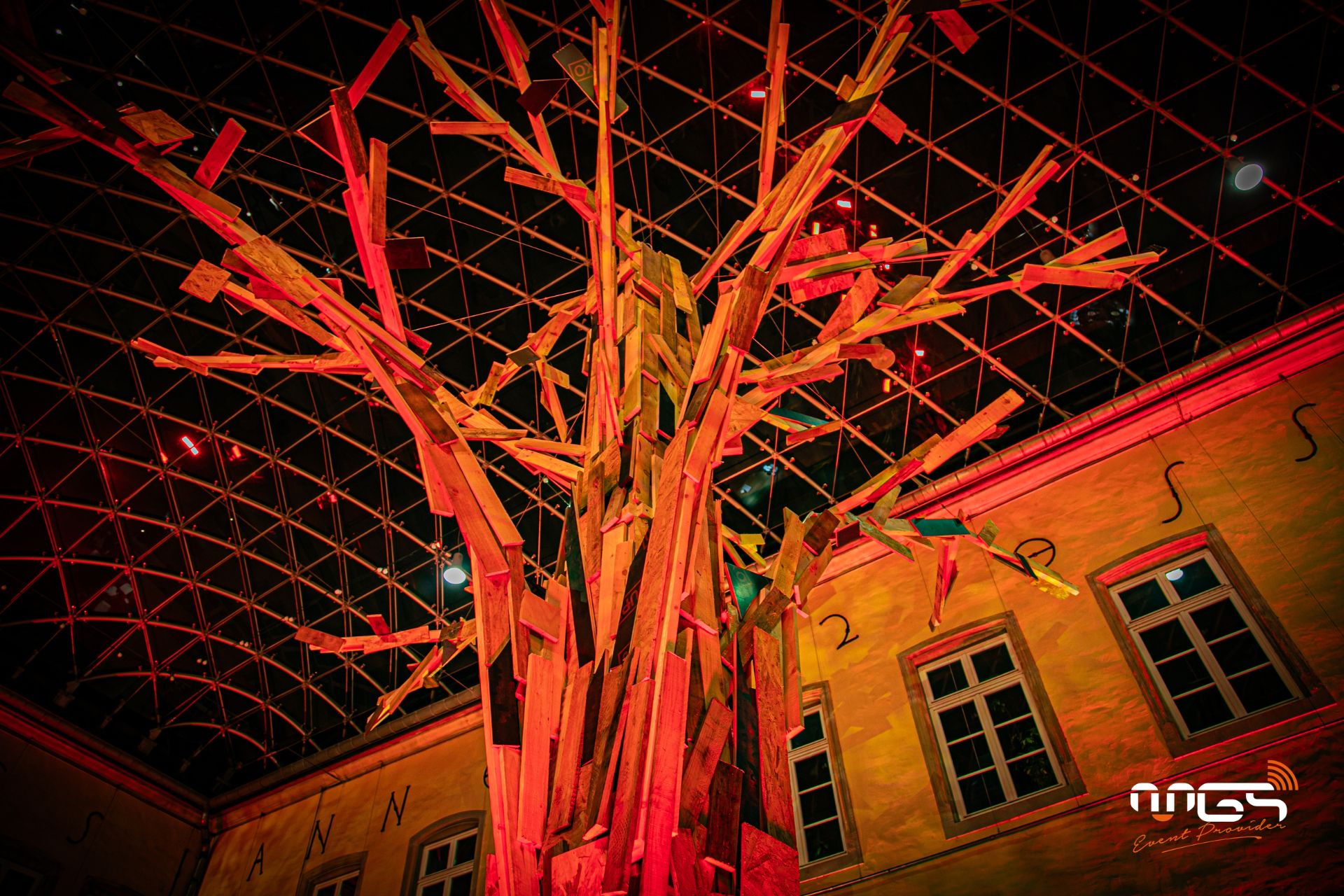 Dans un lieu chargé d’histoire, notre équipe a mis tout son savoir-faire au service d’une expérience unique. Éclairage architectural, sonorisation, mobilier, bar personnalisé, arbre géant sur mesure et toiles tendues : chaque détail a été pensé pour allier technique, design et créativité.