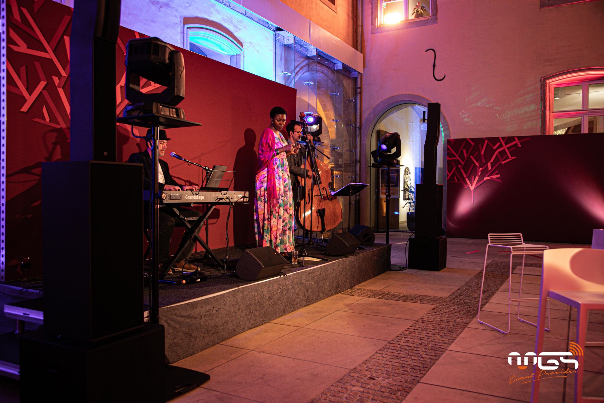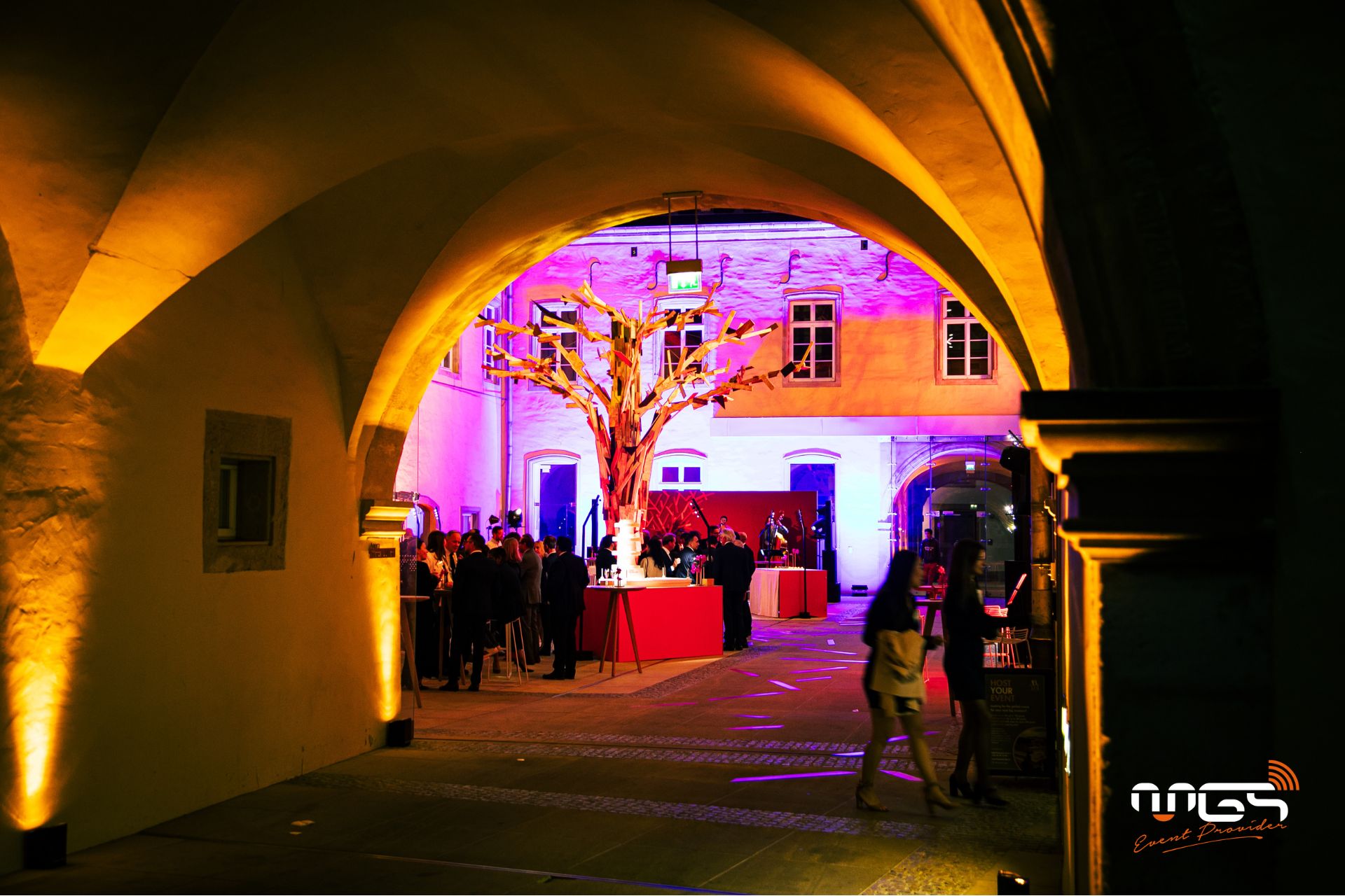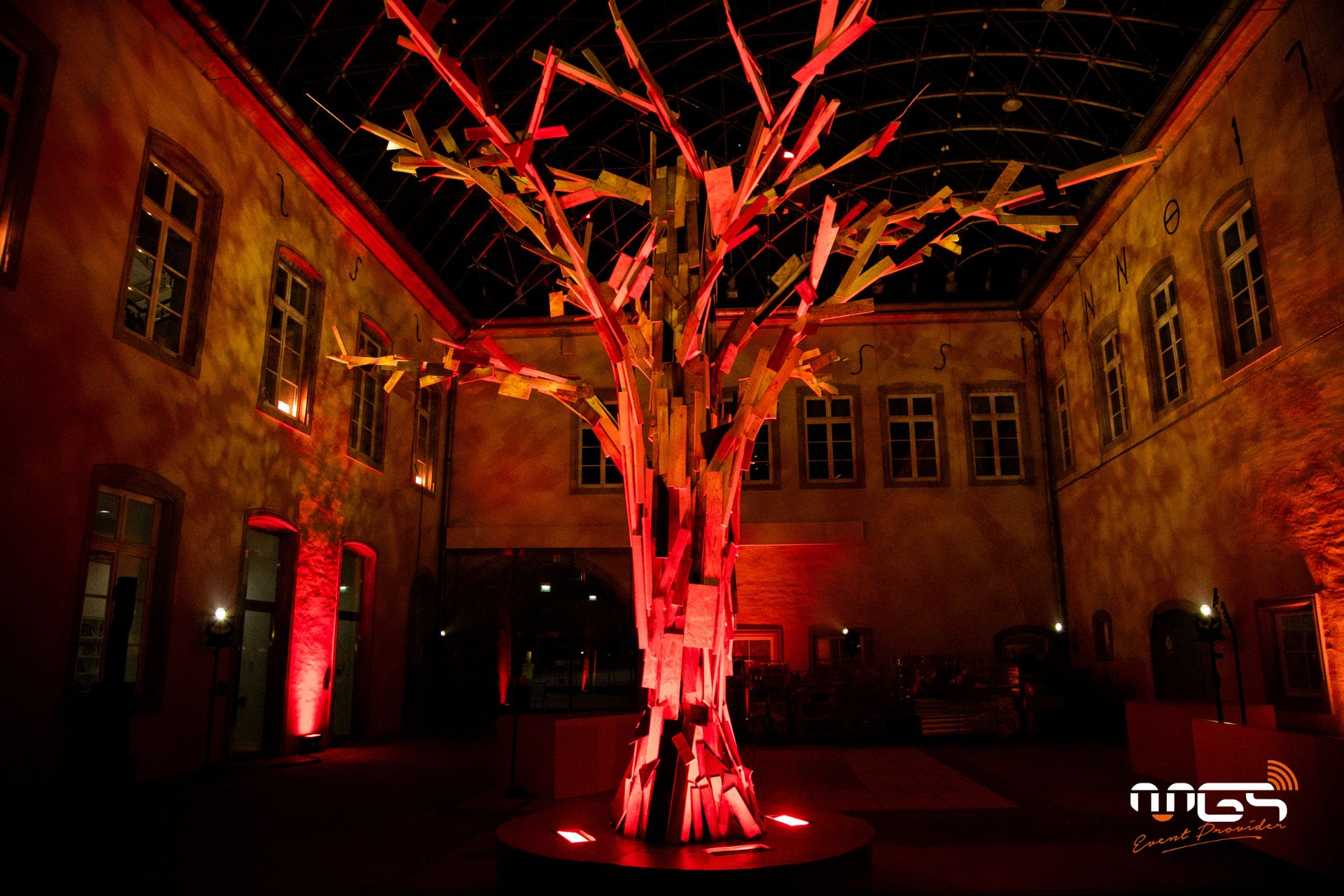 Dans un lieu chargé d’histoire, notre équipe a mis tout son savoir-faire au service d’une expérience unique. Éclairage architectural, sonorisation, mobilier, bar personnalisé, arbre géant sur mesure et toiles tendues : chaque détail a été pensé pour allier technique, design et créativité.
