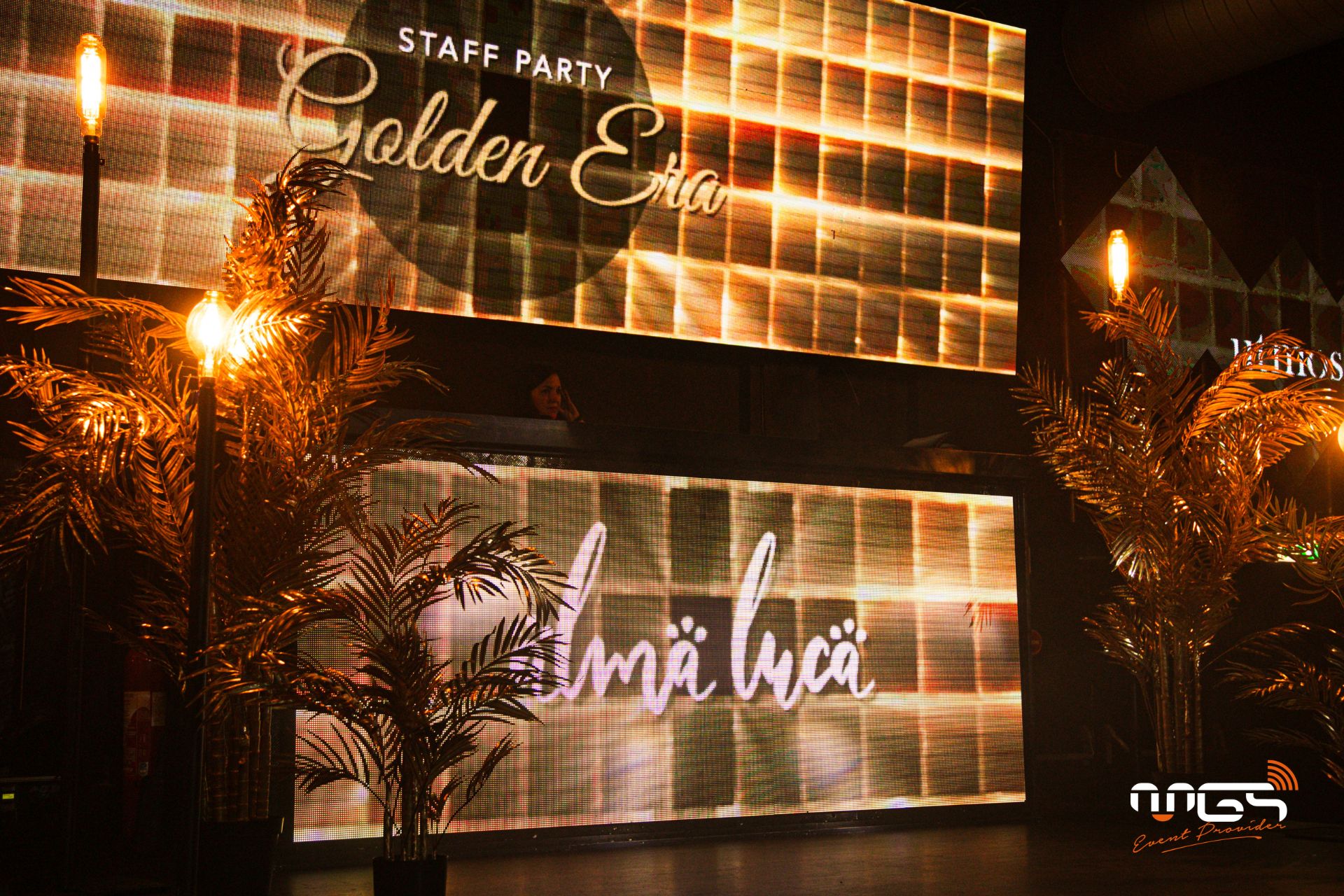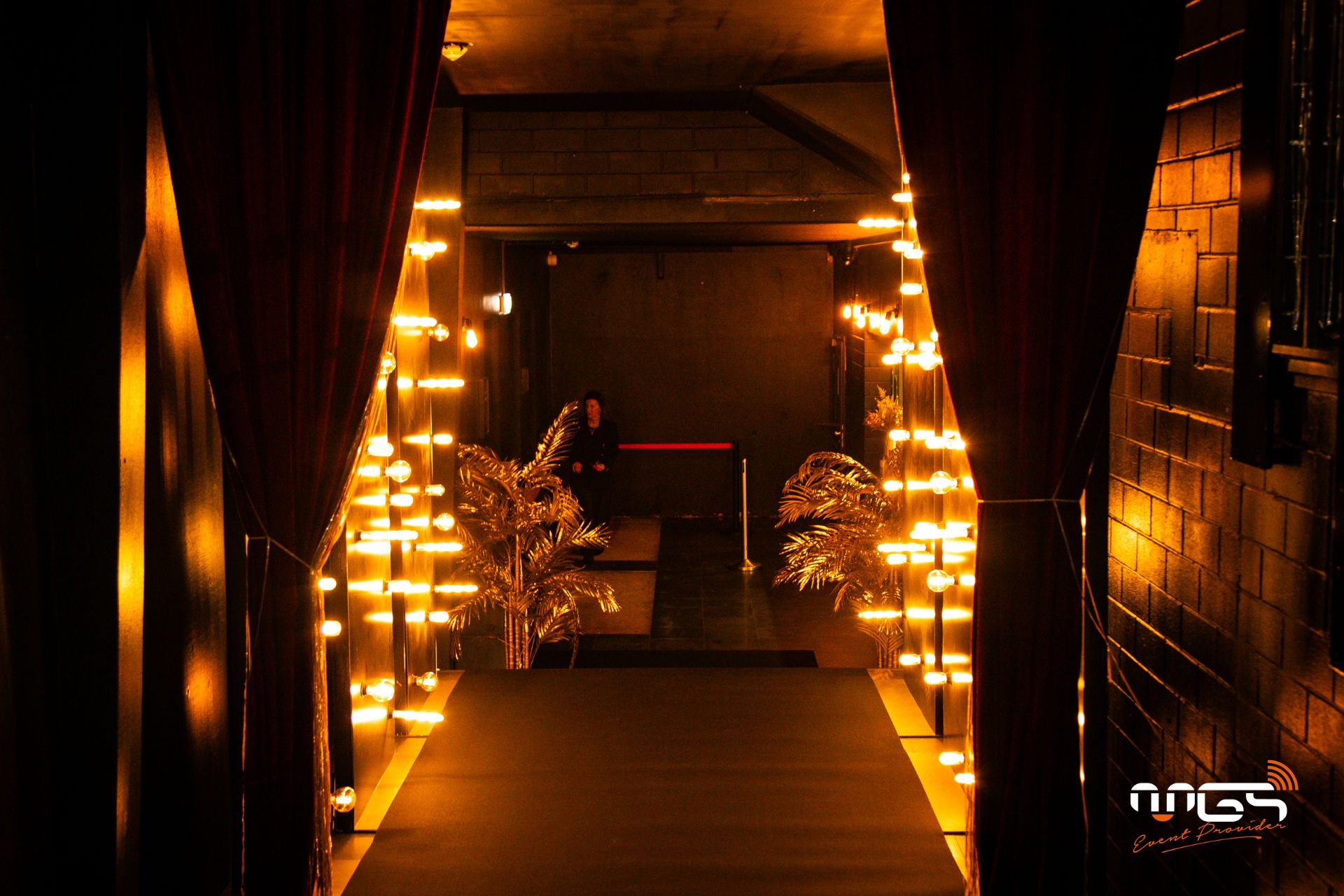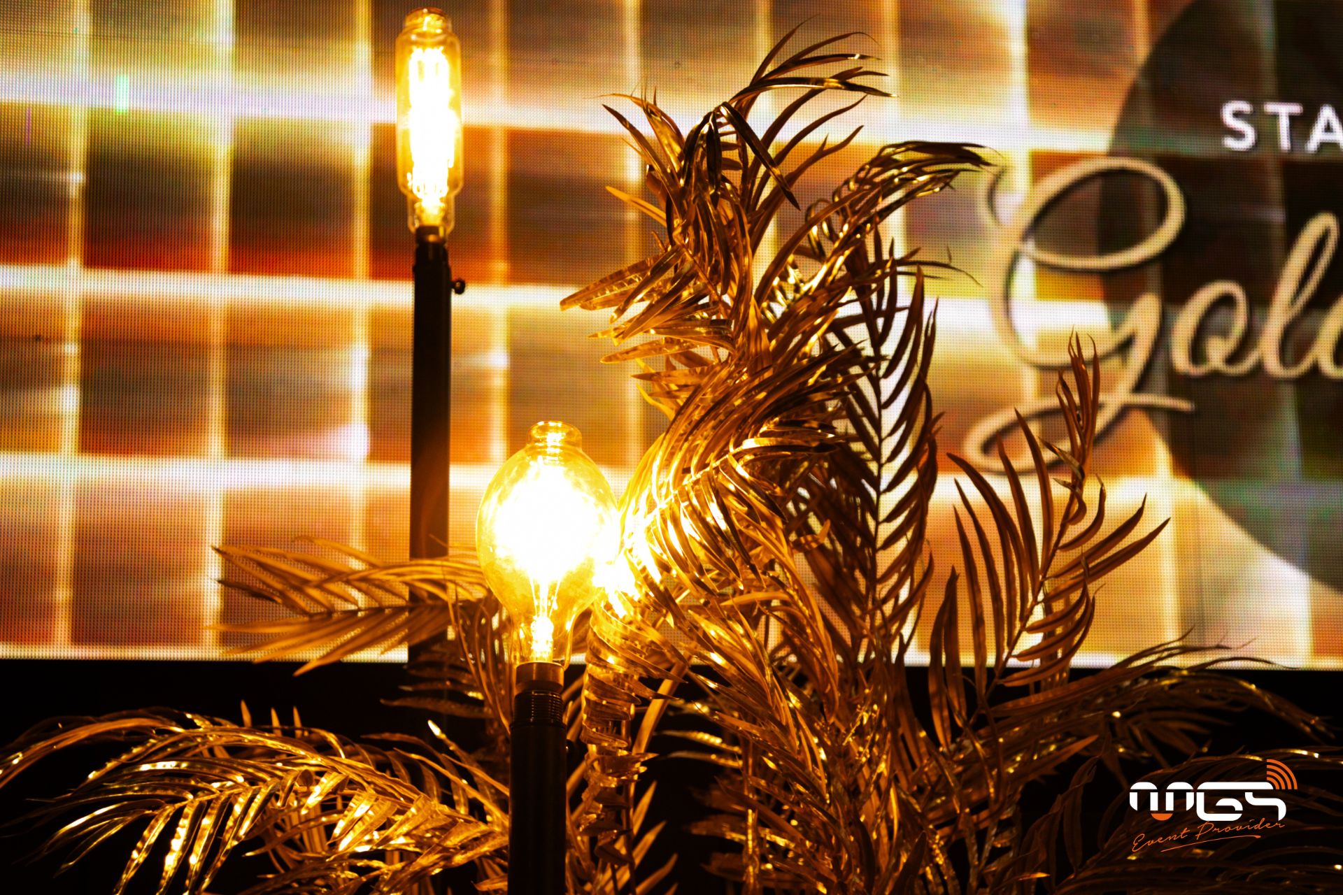 Pour cette soirée placée sous le thème Golden Era, nous avons pris en charge la décoration complète de la salle ainsi que l’installation d’un photobooth avec son fond personnalisé.