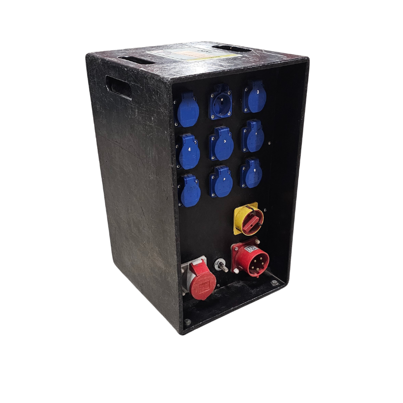 Le PD 32.1 permet de répartir une arrivée 32A vers 9 sorties 16A monophasées et 1 sortie 16A triphasée. Il facilite l’organisation des circuits, améliore la gestion de la puissance et s’adapte aux besoins des productions événementielles. Robuste et polyvalent, il est disponible à la location en Belgique.