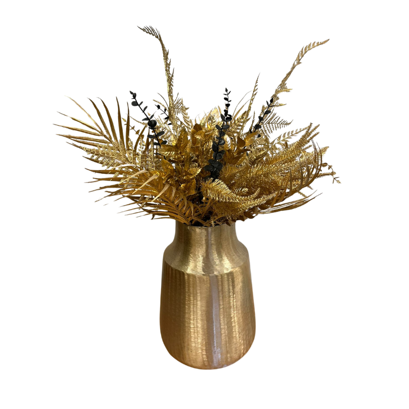 Le montage de fleurs dorées est conçu pour apporter une touche raffinée et éclatante à vos événements. Son aspect lumineux capte la lumière et crée un effet visuel impactant, idéal pour des ambiances sophistiquées.