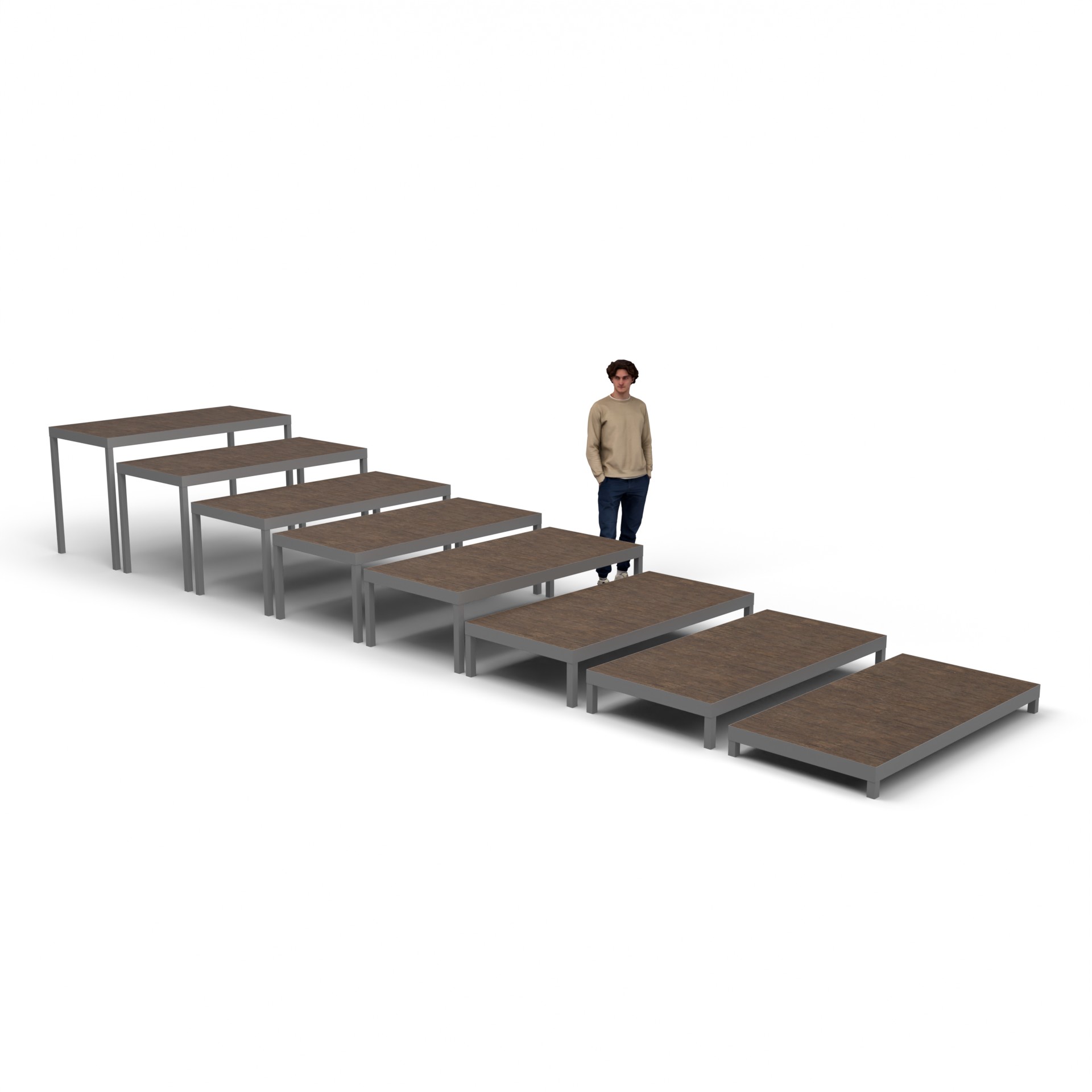 Grâce à son grand format, il permet de couvrir rapidement des surfaces importantes tout en garantissant stabilité et homogénéité. Disponible en différentes hauteurs, il s’adapte aux besoins spécifiques de votre événement, que ce soit pour une scène basse, une estrade intermédiaire ou une plateforme surélevée.