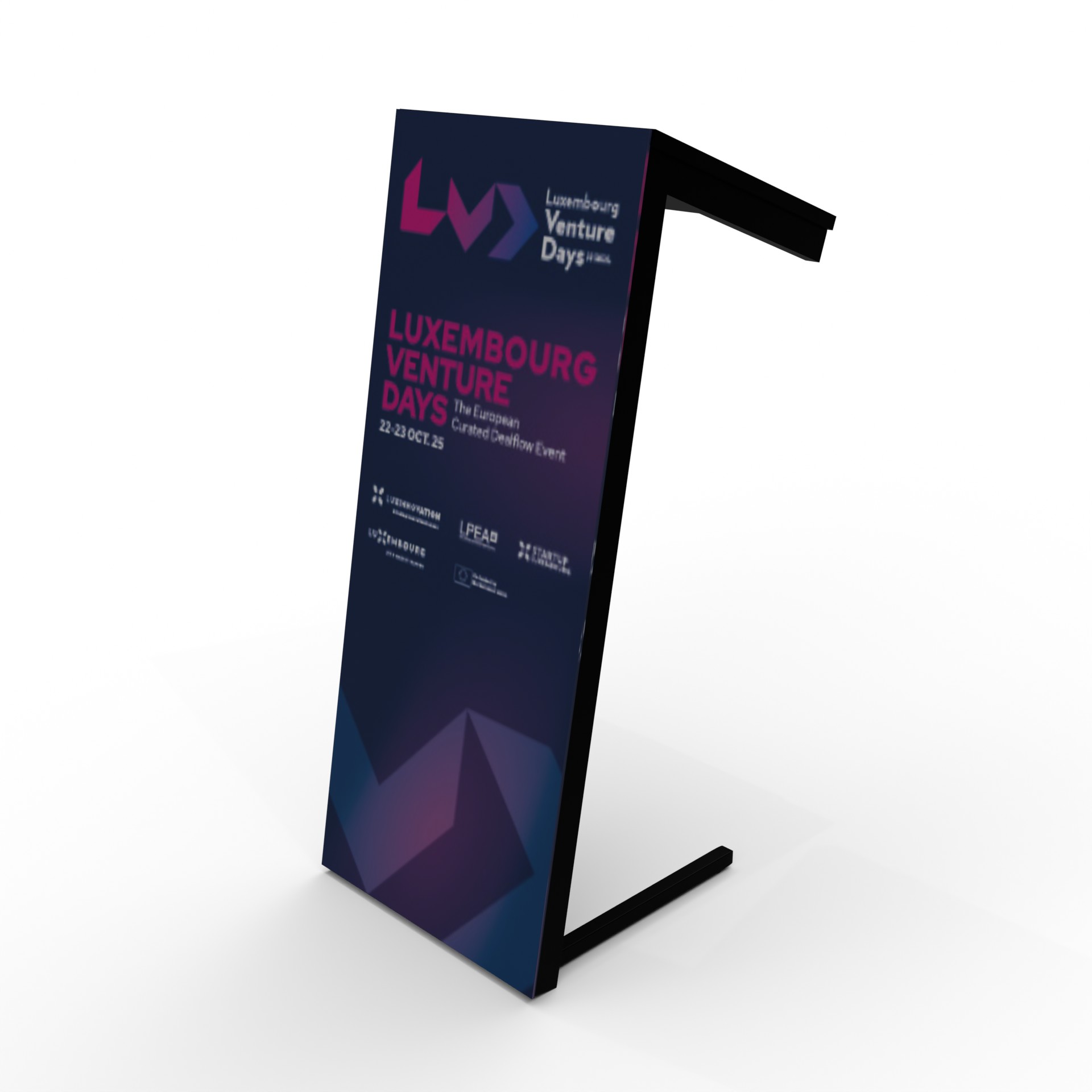 Le pupitre personnalisable est la solution idéale pour donner une identité forte à vos conférences, congrès, cérémonies et événements d’entreprise. Entièrement habillable, il peut être personnalisé aux couleurs de votre marque, avec votre logo, votre charte graphique et un visuel sur mesure créé par notre équipe.